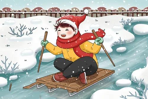 等冬天大冻的时候,村里小河也结了冰。这时就该重型武器——冰船出场了。那时候几乎是人手一个,中午吃过午饭拖着冰船带上火柴就都跑到河里滑冰船去了。虽然河里结了冰,但总有地方冻不实,有时候滑着滑着就连人带冰船滑到冰窟窿里面去了。这个时候带着的火柴就派上用场了,把湿透的衣服生火烤干才敢回家去呀!
