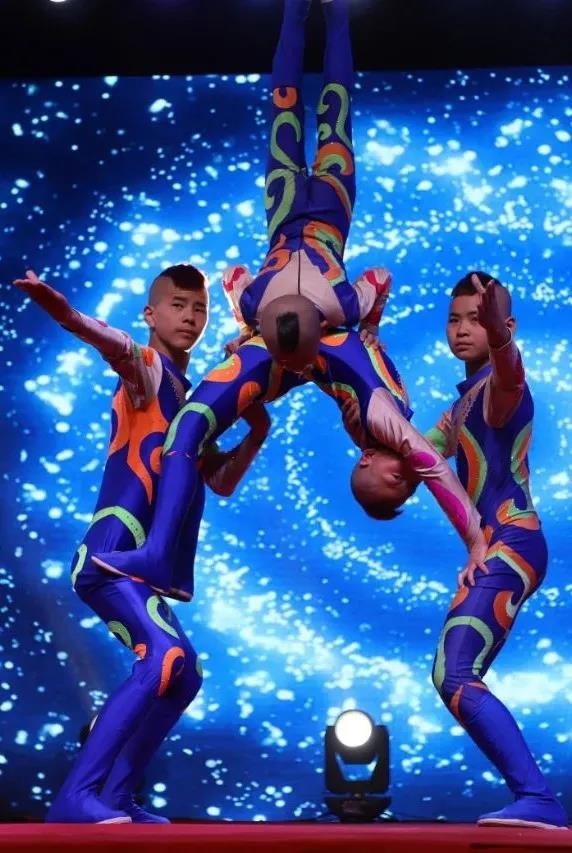 颁奖和演出交互进行,虽是五月的天,夜晚有丝丝凉意,但整个晚会现场热情只增不减,激情四射,一首首高亢的歌曲打动在场每个人的心弦,每当唱到大家熟悉的老歌时,台上演员和台下观众互动演唱,其乐融融。现场即兴表演的脱口秀,令大家笑声不断,呼声一片,掌声连连,尤其是杂技演出,他们中年龄最小的只有五六岁,最大的也只有十五六岁,高难度精湛的杂技表演,令在场的每个人都捏一把虚汗,连连叫绝,掌声,呐喊声不断,将整个晚会推向了高潮。