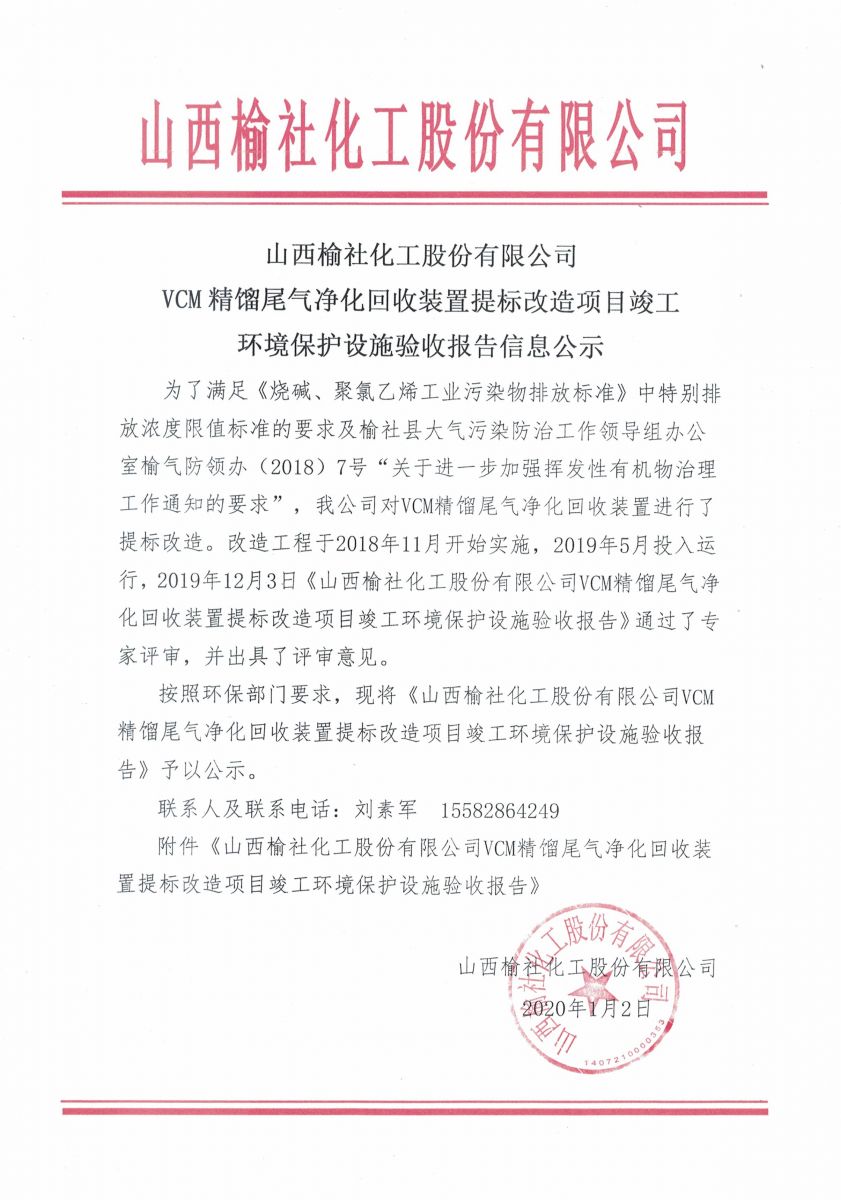 开云综合体育 VCM精馏尾气净化回收装置提标改造项目竣工环境保护 设施验收报告