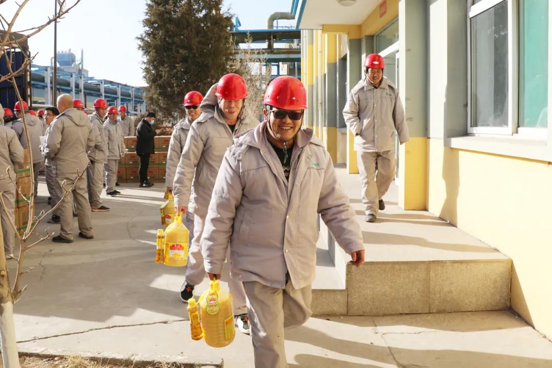 1月11日,公司继发放河套面粉、五常大米、壶瓶大枣等过节福利物品后,又为员工发放了鲁花压榨花生油。