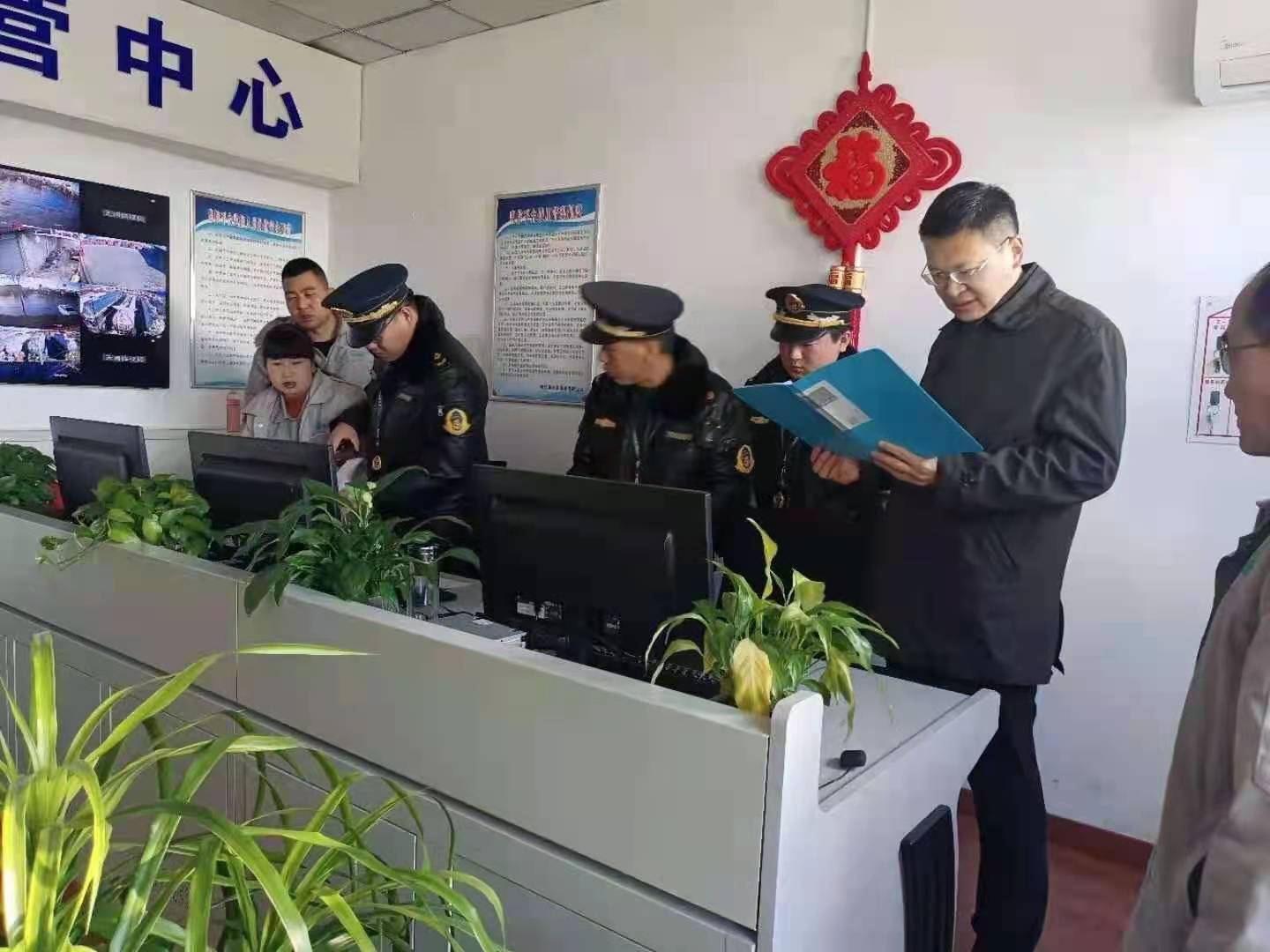 1月1日,县交通局局长毕国峰、县执法大队队长张云一行莅临公司远安物流开展节假日期间安全大排查,远安物流安全科科长裴永军、运行科科长周杰陪同。